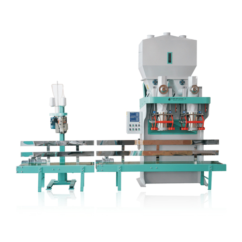 1、储料斗;2、单、双螺旋绞龙喂料装置;3、双称重夹袋计量装置;4、称重仪表控制箱;5、缝包机部包;